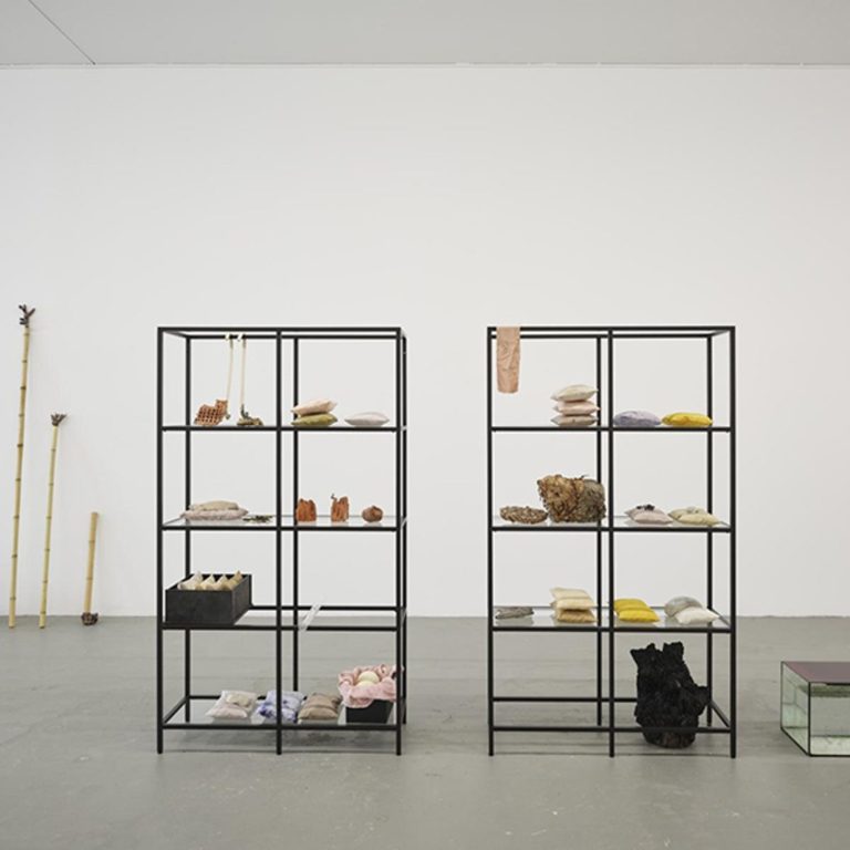Biologische und soziale Zusammenhänge sind die Grundlagen ihrer Objekte, Zeichnungen und dreidimensionalen Collagen. In einer fluiden Sammlung werden Fundstücke mit handgefertigten Plastiken in Kompositionen und Rauminstallationen zusammengebracht, die hierarchische Strukturen, Archive und Symbiosen behandeln.